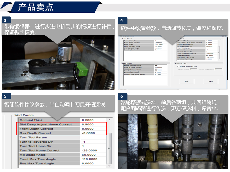 設(shè)備特點(diǎn)介紹:1.可加工不同材質(zhì):不銹鋼和鋁邊帶;2.調(diào)試簡(jiǎn)單,只需要調(diào)整幾個(gè)參數(shù)(深度,長(zhǎng)度和弧度)即可工作;3.帶編碼器,送料精準(zhǔn),步進(jìn)電機(jī)扭距大,不容易打滑丟步...