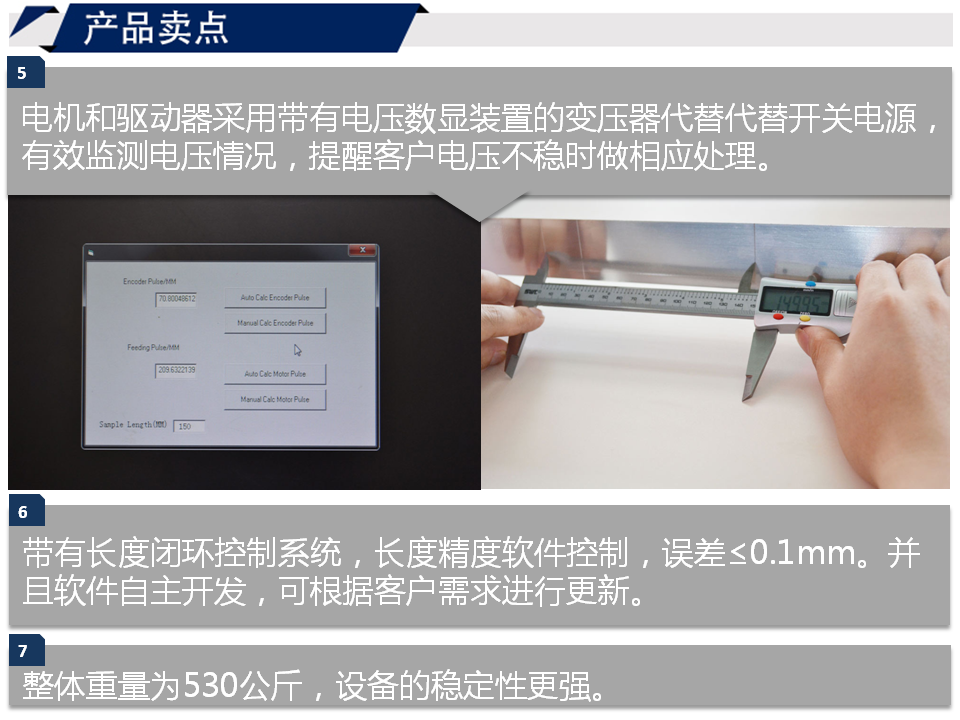 6.帶有長度閉環(huán)控制系統(tǒng),長度精度軟件控制,誤差≤0.1mm。并且軟件自主開發(fā),可根據(jù)客戶需求進行更新。