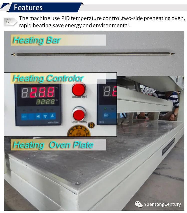 5.加熱板使用氧化鋁板,平整度、光潔度好,加熱板氣動開啟高效、快捷,降低勞動強度
