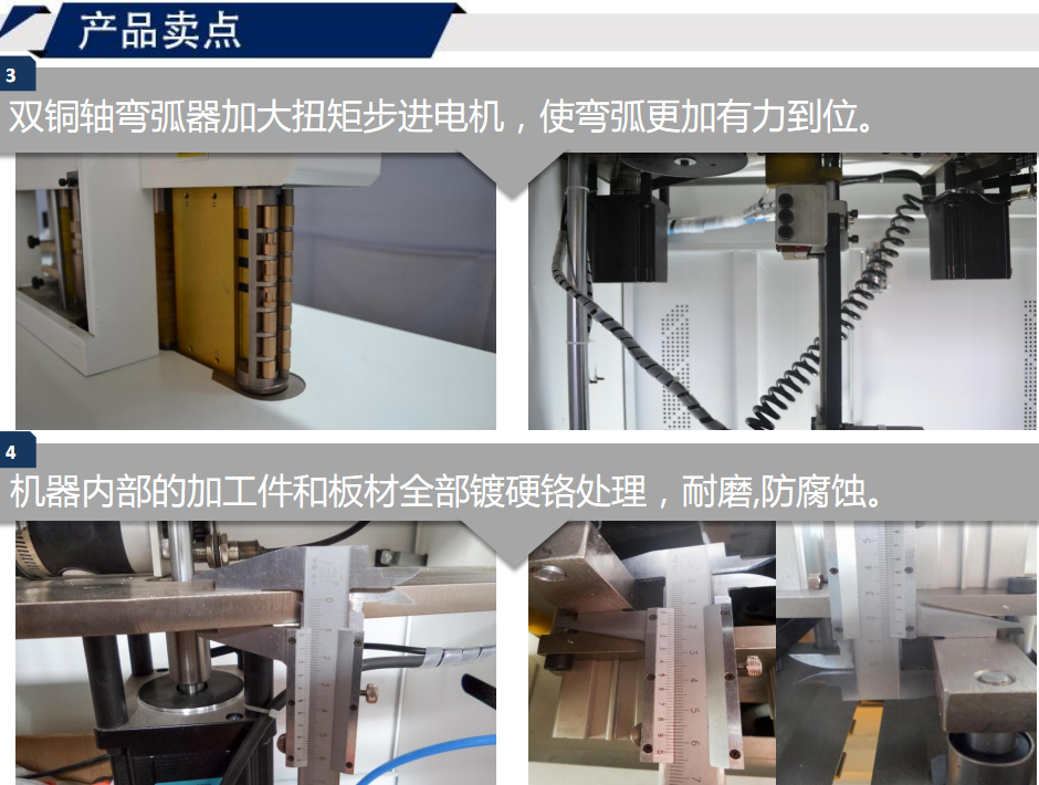 3. 雙銅軸彎弧器加大扭矩步進電機,使彎弧更加有力到位。