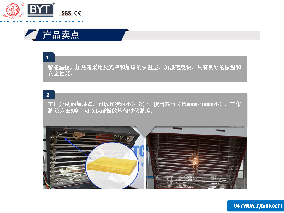 2.工廠定制的加熱器,可以連續(xù)24小時運行,使用壽命長達8000-10000小時,工作溫差為±5度,可以保證板的均勻軟化溫度。